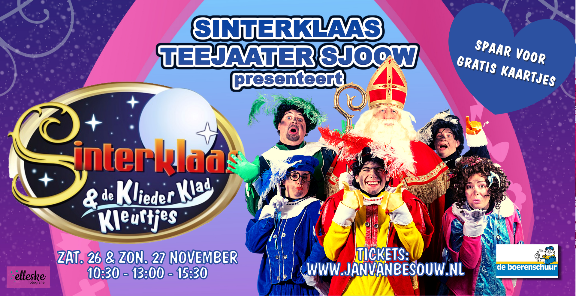 Sinterklaas en de Klieder Klad Kleurtjes zaterdag 26 en zondag 27 november in Jan van Besouw